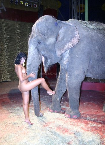 Обнаженная гимнастка зоосекс со слоном. Бесстрашная девушка сует голову в пасть слону и трахает жопу бананом