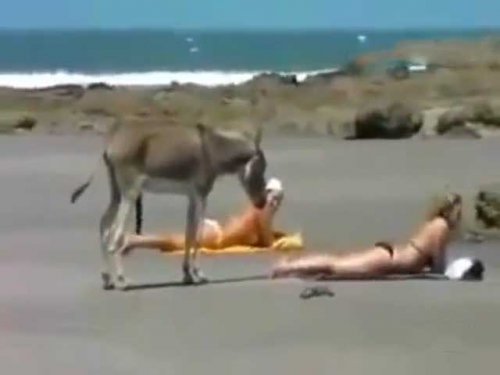 Осел возбудился на загорающих девушек