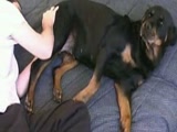 Грубый парень зоофил трахает здоровую псину